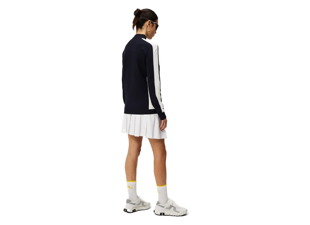 Introducing our popular Adia Knitted Sweater, a versatile piece crafted in stretchy and soft knit fabric. It features a ribbed mock neck collar and fully fashioned details, offering a sophisticated look and feel. Designed with a knitted Bridge logo on the chest, contrast knitted-in sleeves and side panels add a modern touch to the design.