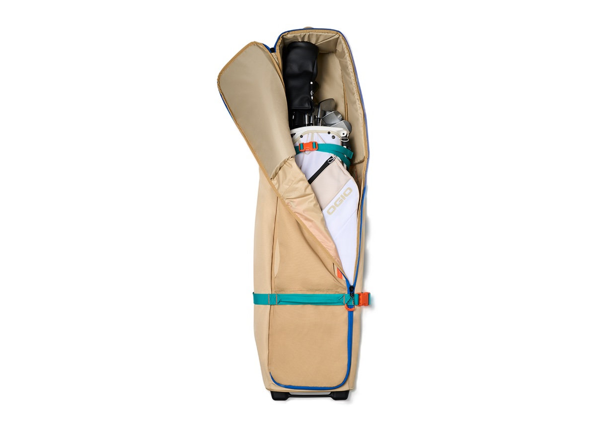 Introducing the Alpha Slim Travel Cover — the perfect companion for golfers on the go. Built for stand and hybrid bags, it offers sleek OGIO protection with foam padding and reinforced straps to keep your clubs safe. Collapsible for easy storage, its adjustable strap doubles as an add-a-bag feature for seamless travel.