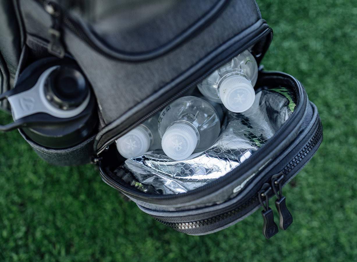 With 11 total pockets, the Signature Cart Bags provides ample storage options for traditional on-course items such as gloves, towels and outerwear. A generous integrated cooler pocket keeps beverages chilled and ready for consumption on warm days.