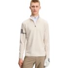 - Quarter zip front with branded logo puller