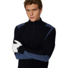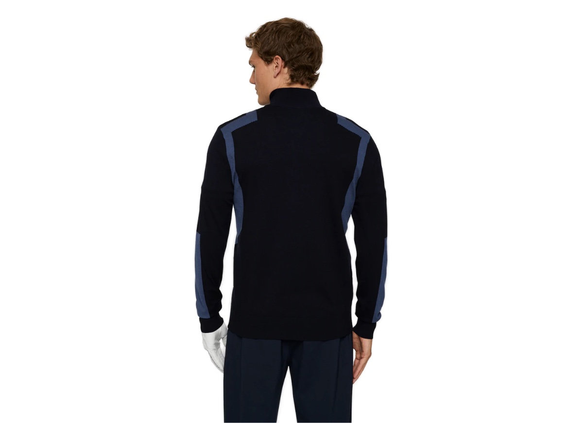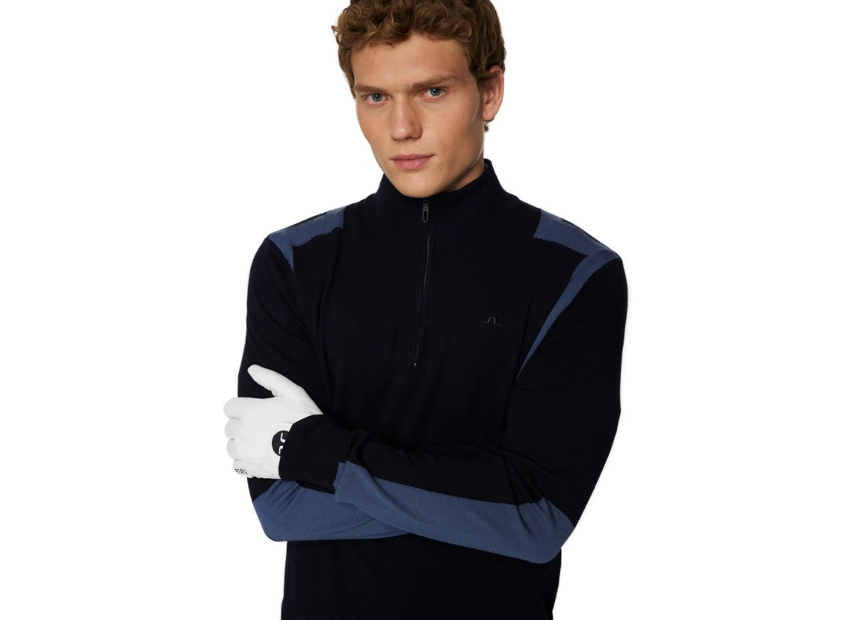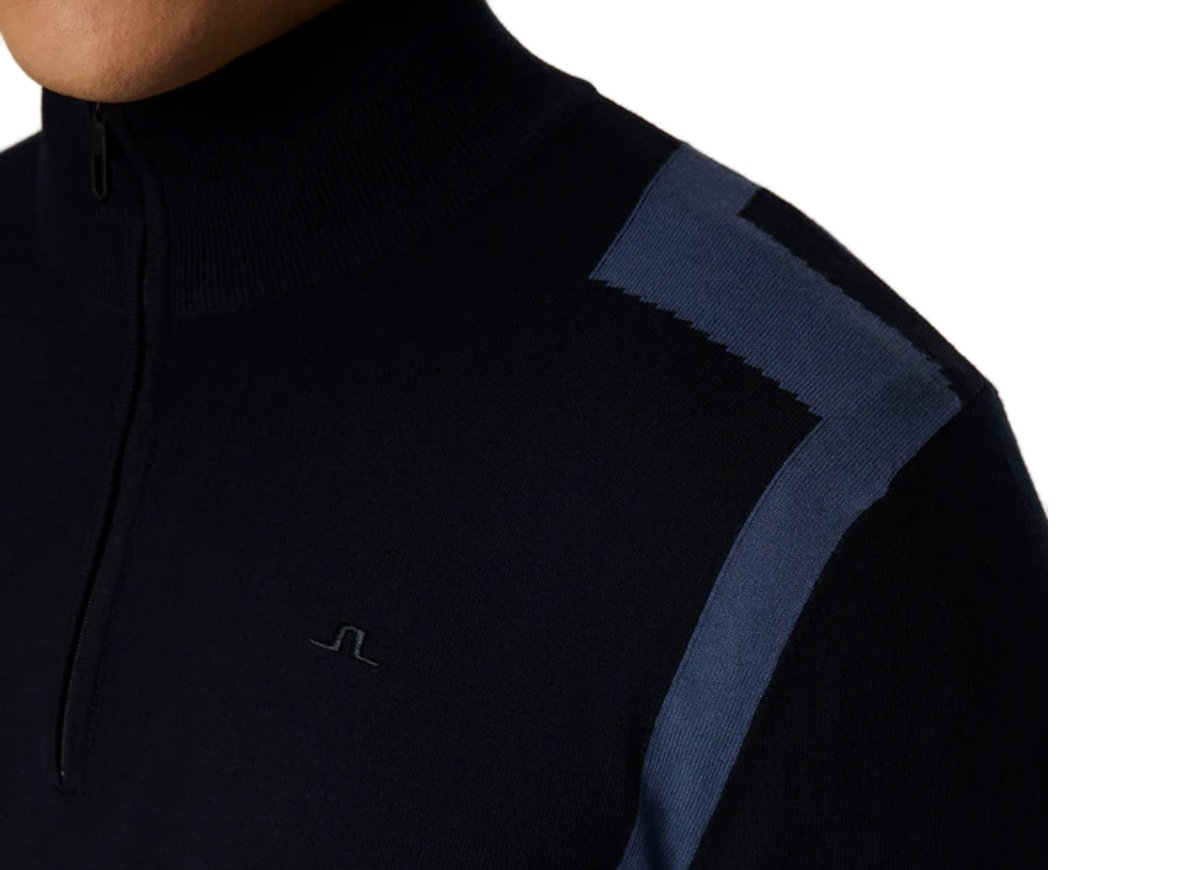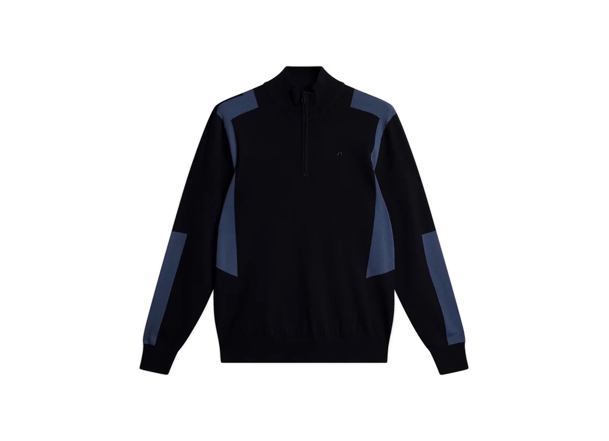 Designed to perform and stand out. The Kendrick Sweater features contrast intarsia panels, stretch-friendly 16-gauge yarn, and a half-zip design for versatile wear.