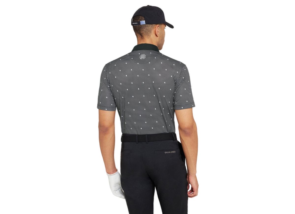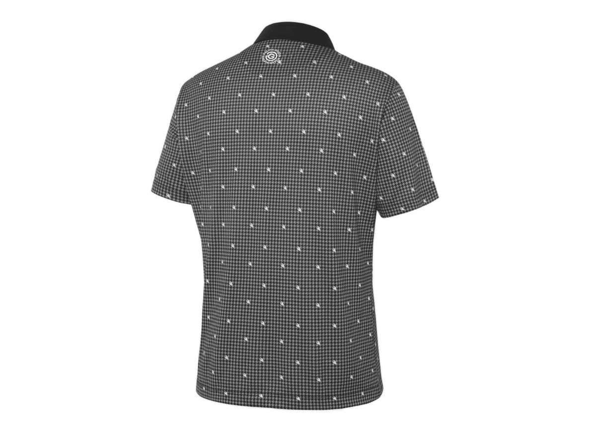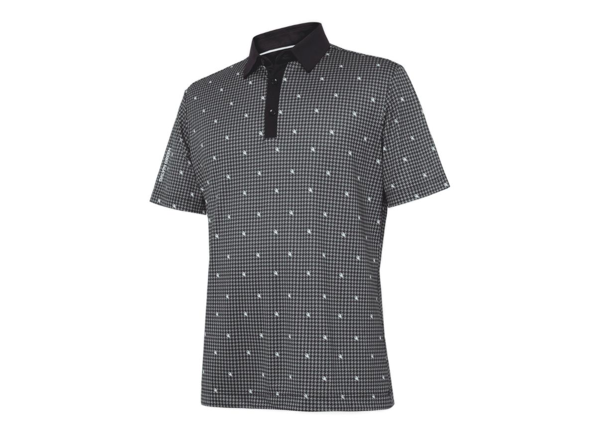 Marley pairs a houndstooth‑inspired print with a solid tailored collar and placket. The stretch fabric delivers extreme breathability, quick‑dry features, and UV 20+ protection, while its soft hand and single‑fold sleeve hem ensure comfort and freedom of movement on the golf course.