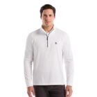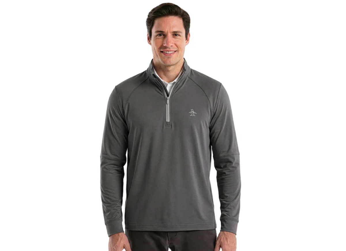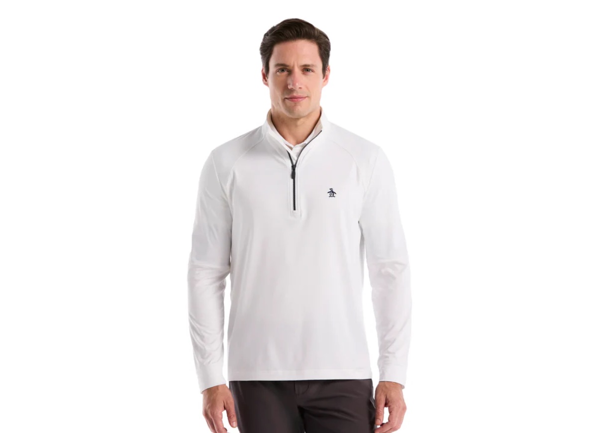 Ace your style game with this sharp men’s golf pullover from Original Penguin, ready for the course or casual endeavors. Crafted from a lightweight jersey fabric, this athletic top expertly blends polyester for durability and elastane for comfortable stretch, ensuring you can swing freely. The distinct mixed media design offers a modern, stylish edge. A chic mock neck collar and practical quarter zip placket add a versatile touch, making it ideal for layering during those cooler rounds. With its long sleeves and performance-driven fit, this men’s athletic pullover provides exceptional comfort