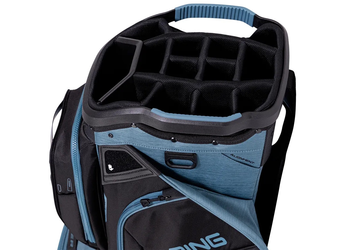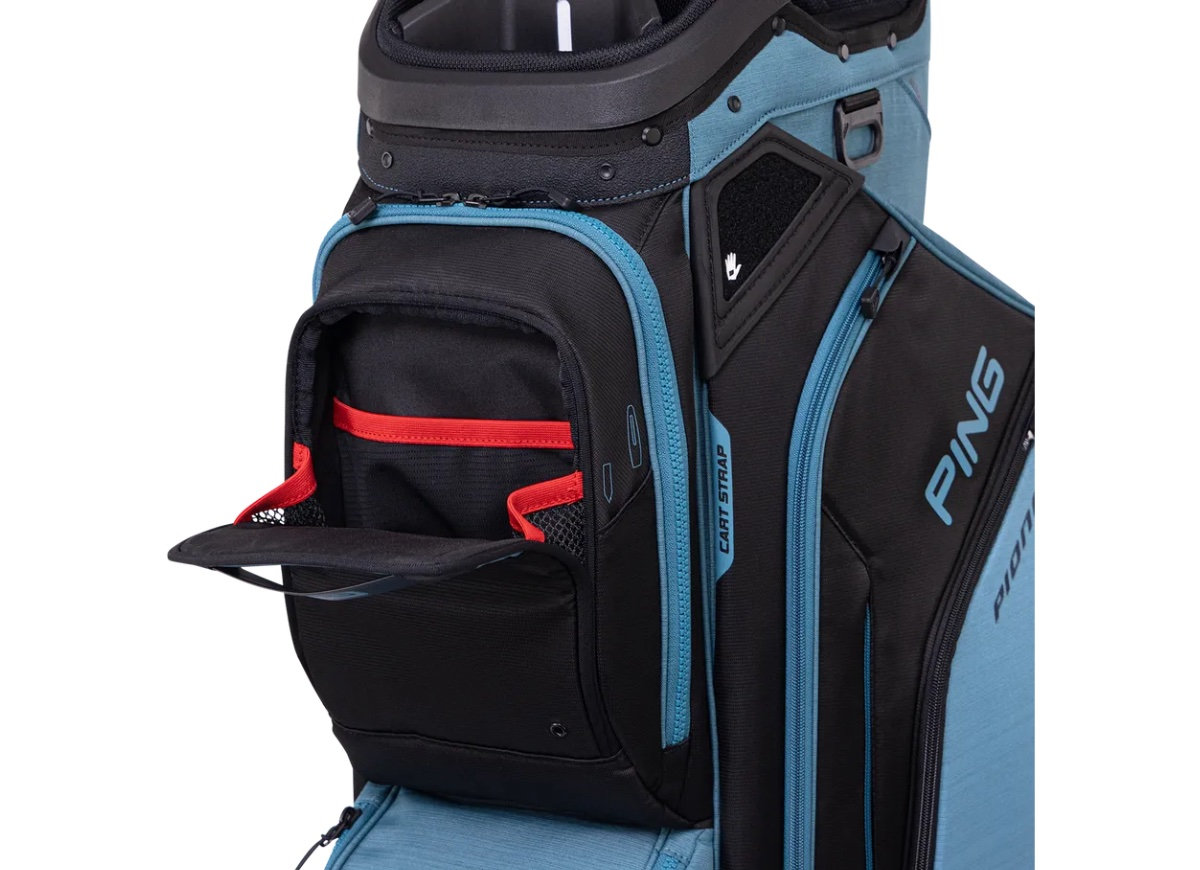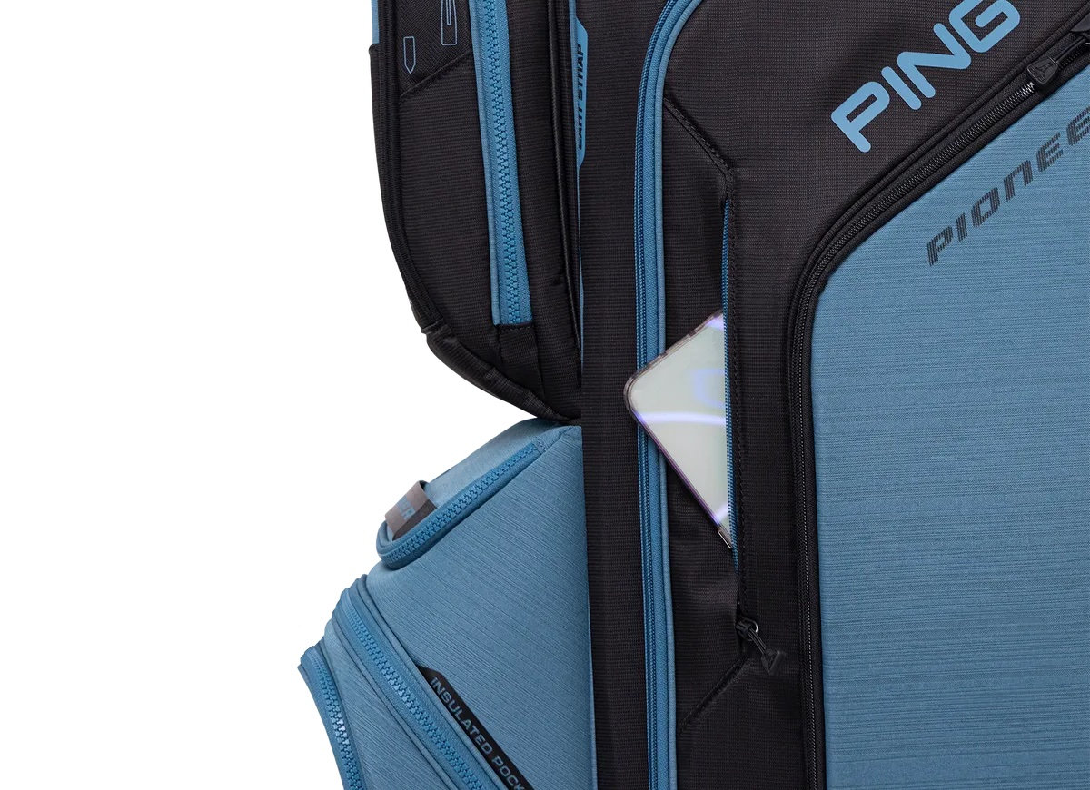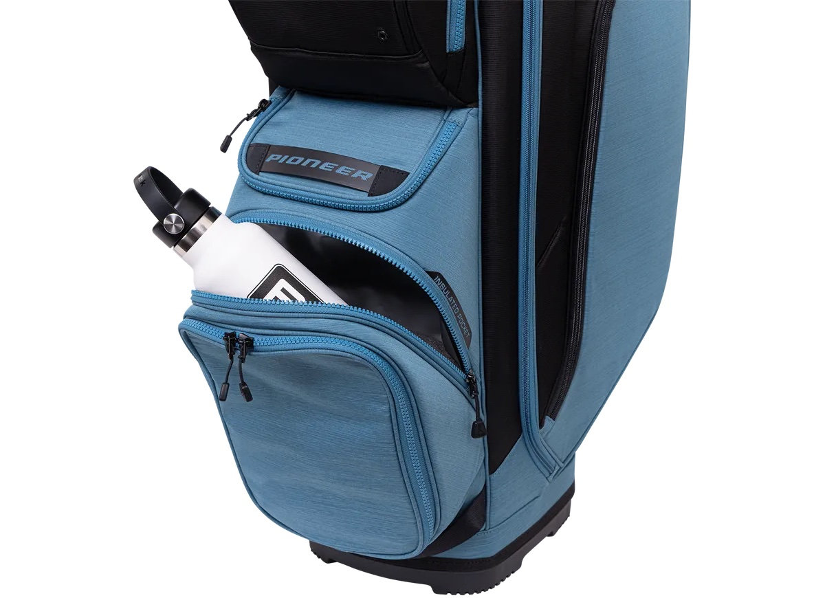 Bring all the things you want to have on hand: extra golf balls, the rain gear and sweaters, rangefinder, valuables. There’s a home for everything in the new Pioneer’s 16 pockets and 35 litres of pocket volume. The 15-way top has been redesigned to allow for a larger putter well. A removable built-in valuables pouch is one of many extra touches that make the Pioneer so appealing. In new colourways, to boot.