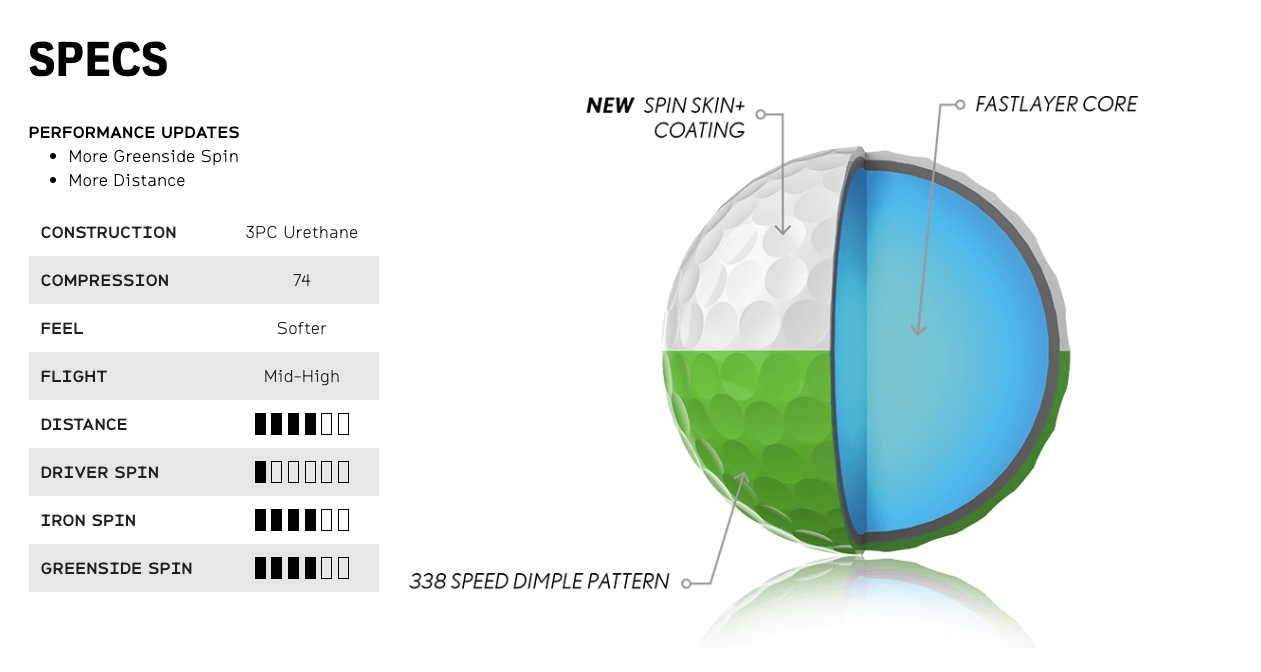 New for this generation, a durable coating we call Spin Skin+ digs deep into Wedge and Iron grooves, maximizing spin for better control and stopping power, while also improving the cover’s resistance to dirt and grime.