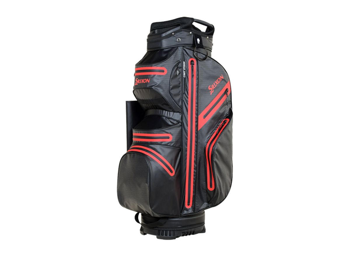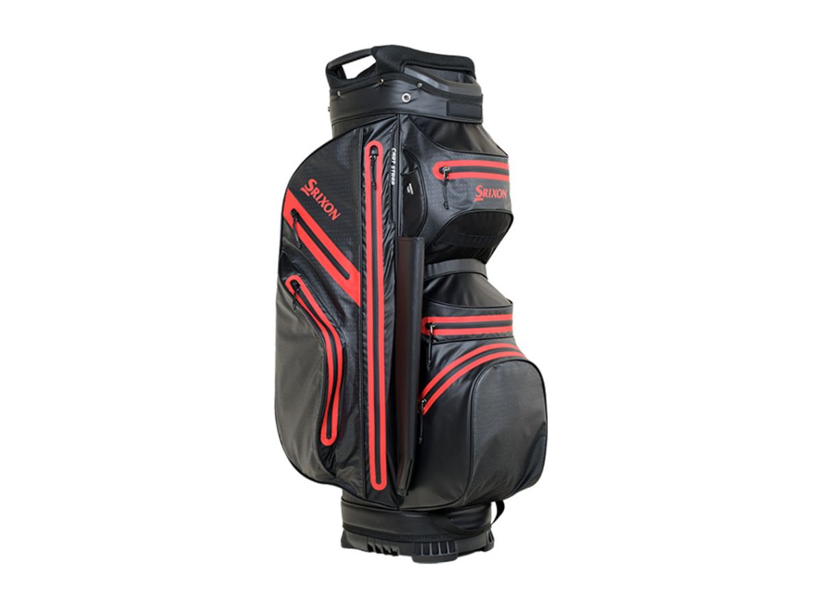The Srixon Weatherproof cart bag features a 14 way top divider system and 8 spacious pockets for total organisation on the course. Cutaway base fits snugly onto your cart and easy access pockets with Srixon branding to the side and back.