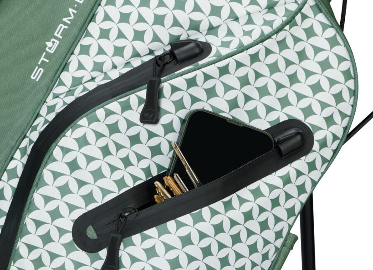 The TaylorMade Storm Dry Stand Bag combines weather protection with practical organisation for golfers who demand reliability on the course. Weighing just 2.22kg, this lightweight stand bag features a 4-way top divider to keep clubs organised and accessible. The waterproof construction with seam-sealed zippers and rain hood shields your equipment from the elements, whilst the flex base system ensures stability on any terrain.