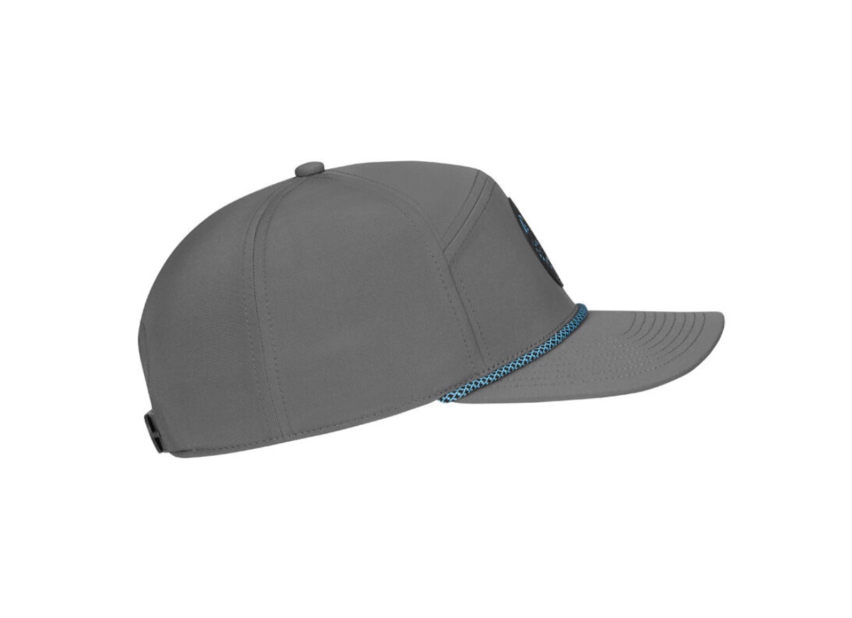 The Horizon Rope Hat offers a clean, modern West Coast look that appeals to the modern golfer. It features a split panel front and a curved visor.