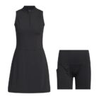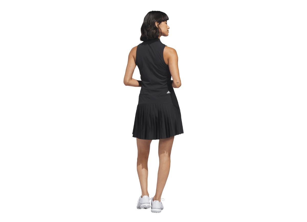 Designed for those who seek style and functionality, the Ultimate365 Tour Dress offers modern elegance both on and off the golf course.Crafted to fit close to the body, the tricot fabric provides a sleek and smooth finish. The quarter zipper adds a touch of modernity and comfort during your swings, while decorative pleats offer a playful touch, blending sophistication and sport.Whether you’re playing a competitive round or enjoying a casual day out, adidas brings you a dress with effortless elegance and performance.