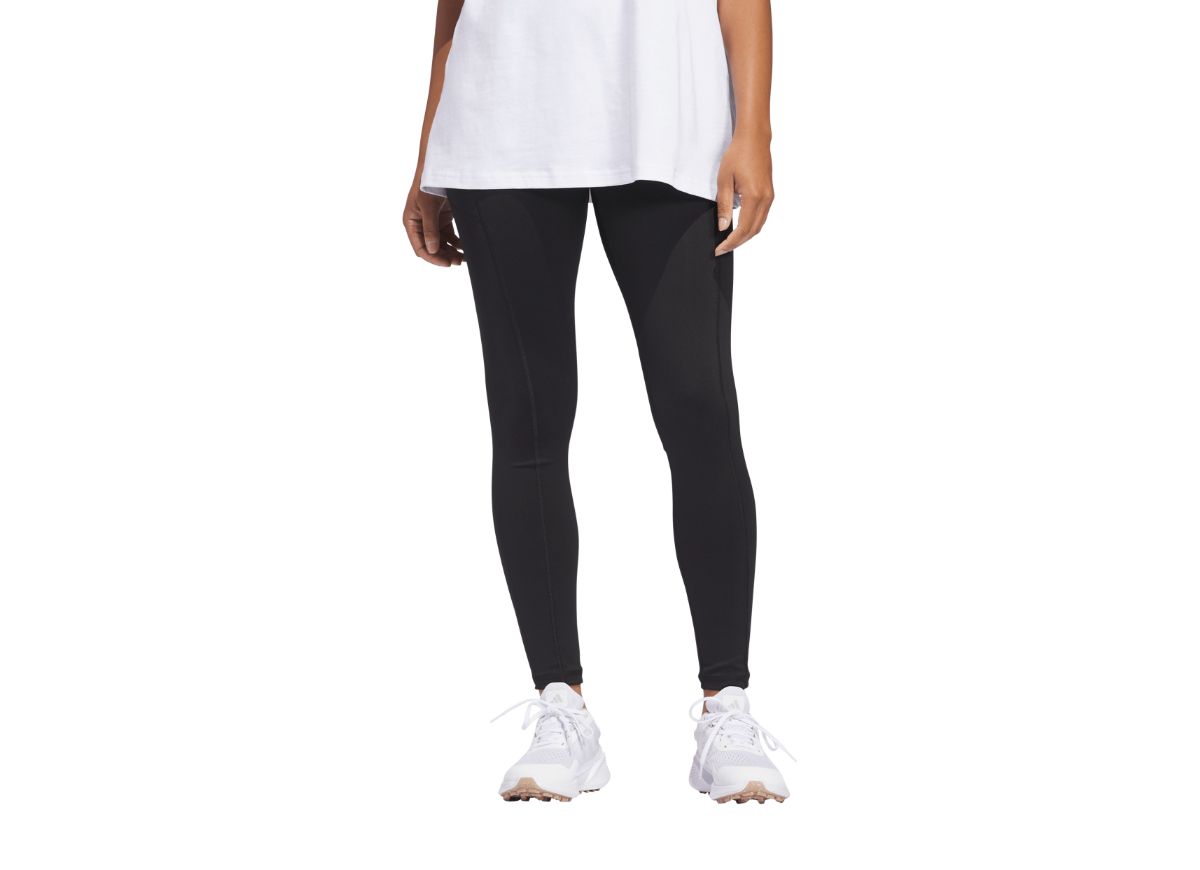 Enjoy the sleek look and feel of these adidas golf leggings through 18 holes and beyond. Snug and stretchy, they flex with you as you move, and the wide waistband stays put for a confident feel. Side pockets keep tees, markers and your phone handy.