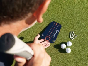 The adjustable putter head gate helps you train for solid ball contact.