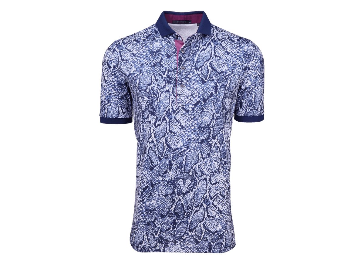 The Wolf Scales Polo presents a contemporary reimagining of a scale pattern, showcased on luxurious fabric for a refined look. Designed with breathability, quick-drying, and four-way stretch, this performance printed polo moves with you throughout the day. The four-button placket, contrast details under and on top of the placket, and a knit cutaway collar elevate the style.